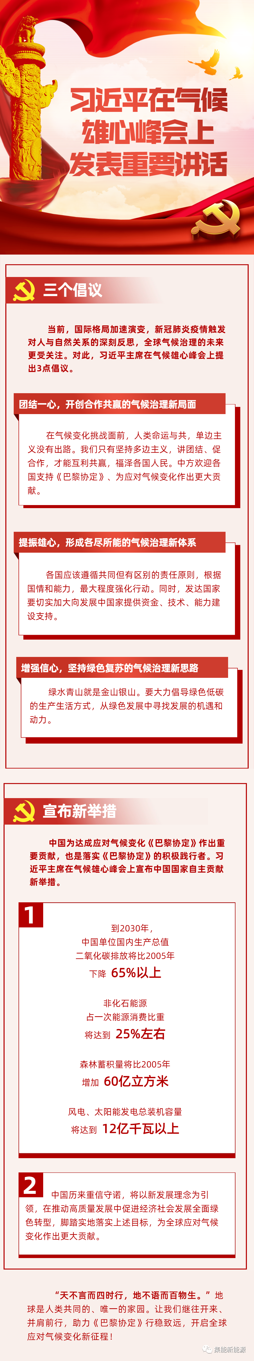 <p font-size:17px;background-color:#ffffff;text-align:center;"="" style="margin: 0px; padding: 0px; list-style-type: none; font-family: "Microsoft YaHei"; background-color: rgb(255, 255, 255); color: rgb(51, 51, 51); text-indent: 2em; text-align: center;" data-mce-style="margin: 0px; padding: 0px; list-style-type: none; font-family: 'Microsoft YaHei'; background-color: #ffffff; color: #333333; text-indent: 2em; text-align: center;">國(guó)家主席習(xí)近平12日在氣候雄心峰會(huì)上通過(guò)視頻發(fā)表題為《繼往開(kāi)來(lái),開(kāi)啟全球應(yīng)對(duì)氣候變化新征程》的重要講話,宣布中國(guó)國(guó)家自主貢獻(xiàn)一系列新舉措。<p font-size:17px;background-color:#ffffff;text-align:center;"="" style="margin: 0px; padding: 0px; list-style-type: none; font-family: "Microsoft YaHei"; background-color: rgb(255, 255, 255); color: rgb(51, 51, 51); text-indent: 2em;" data-mce-style="margin: 0px; padding: 0px; list-style-type: none; font-family: 'Microsoft YaHei'; background-color: #ffffff; color: #333333; text-indent: 2em;"><p font-size:17px;background-color:#ffffff;text-align:center;"="" style="margin: 0px; padding: 0px; list-style-type: none; font-family: "Microsoft YaHei"; background-color: rgb(255, 255, 255); color: rgb(51, 51, 51); text-indent: 2em; text-align: center;" data-mce-style="margin: 0px; padding: 0px; list-style-type: none; font-family: 'Microsoft YaHei'; background-color: #ffffff; color: #333333; text-indent: 2em; text-align: center;">12月12日,國(guó)家主席習(xí)近平在氣候雄心峰會(huì)上通過(guò)視頻發(fā)表題為《繼往開(kāi)來(lái),開(kāi)啟全球應(yīng)對(duì)氣候變化新征程》的重要講話,宣布中國(guó)國(guó)家自主貢獻(xiàn)一系列新舉措。<p font-size:17px;background-color:#ffffff;text-align:center;"="" style="margin: 0px; padding: 0px; list-style-type: none; font-family: "Microsoft YaHei"; background-color: rgb(255, 255, 255); color: rgb(51, 51, 51); text-indent: 2em; text-align: center;" data-mce-style="margin: 0px; padding: 0px; list-style-type: none; font-family: 'Microsoft YaHei'; background-color: #ffffff; color: #333333; text-indent: 2em; text-align: center;">