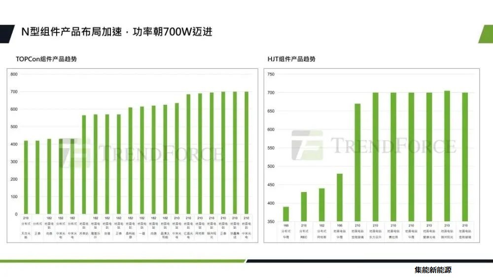 隨著n型技術(shù)不斷升級加速,采用大尺寸加n型的技術(shù),組件功率可以達到700W+。實現(xiàn)了技術(shù)性的突破,這也是未來光伏行業(yè)新技術(shù)、新產(chǎn)品的開發(fā)方向。